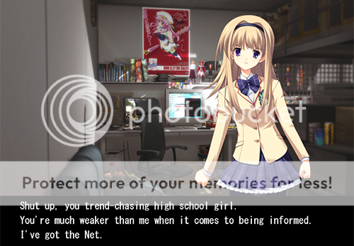 Una VN, entre otras cosas, puede o no incluir interacción directa por parte del jugador, haciendo que éste tome decisiones a lo largo de la narración y basándose en el camino que toma puede llegar a un final u otro.Wikipedia dijo:Una novela visual es un género de videojuego de aventura conversacional que presenta mayormente imágenes estáticas, usualmente con características artísticas de anime (aunque también puede ser opcional). Estos están particularmente centrados en una historia, o contienen en sus escritos una narración similar a la de una novela.