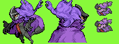 Si tengo que explicar Bueno es un pokemon fantasma humanonide como ya dije xD Lo de arriba se supone que es su cabello y lo de gris un mechón, tiene una especie de uniforme colgando de su cuerpo un par de garras negras Lo de moradito mas claro seria como una especie de capa de la cual la parte del cuello es parte de donde sobre salen su piernas y se supone que tiene una levantada como si fuera propinar una patada (Si se que no es muy logico de su concepto me encargo yo xD no tienen que ser esos colores exactos solo parecidos los que convengan mejor para hacer el sprite supongo, Al final no se si termine con esos colores pero eso ya es mi problema xD Entonces eso seria si se puede :3
