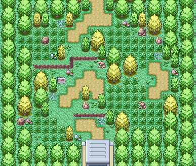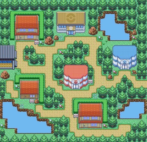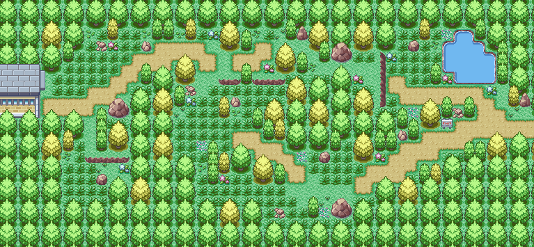 La primera versión del juego llegaría hasta aquí. No sé si dejaré accesible la ruta norte de Oldale Town, la Ruta 103. Al intercambiador de rutas le cambiaré la paleta próximamente porque, comparándolo con el resto del entorno, tiene una paleta demasiado intensa (Además aún no le he cambiado las outlines xd). No tendrá interiores el intercambiador, se saldrá directamente al lado opuesto. Sobretodo cumple una función estética (estilo rojo fuego) y me sirve para el cambio de tileset.