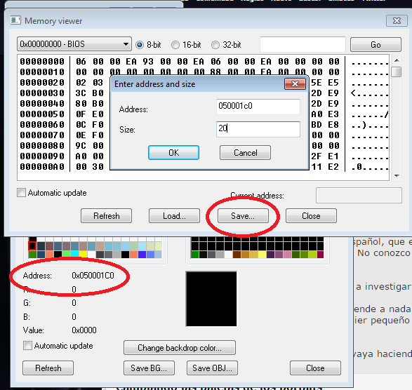 Y con el Palette y el Memory Viewer guardo la paleta desencriptada.