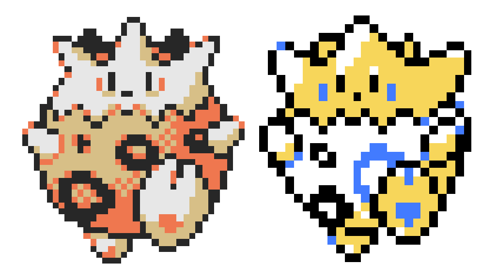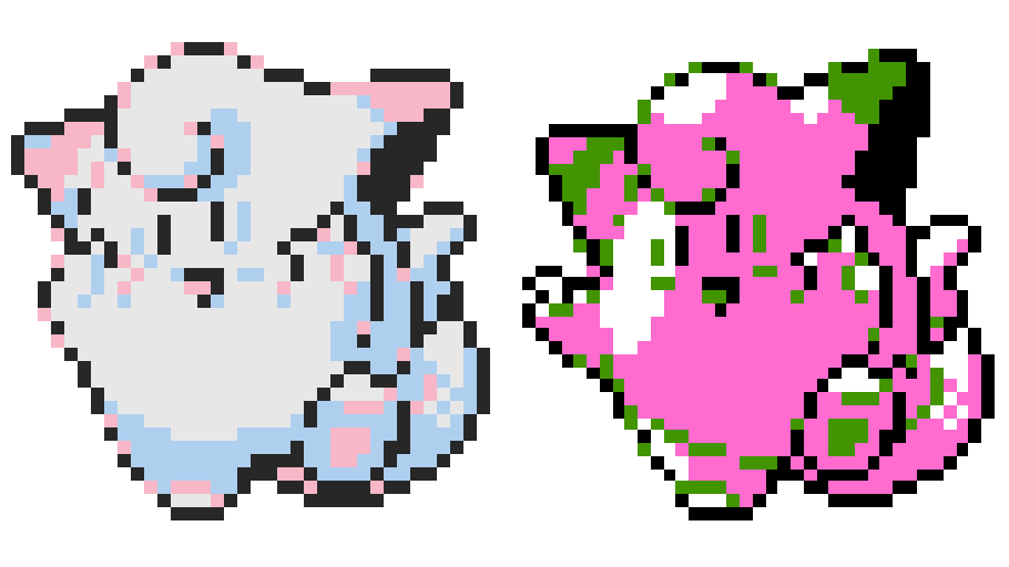Muy probablemente se deba a que en esta build, todavía no se habían decidido los colores finales y dado que la demos se iba a jugar en una Super Nintendo, querían buscar un estilo más minimalista hasta que Ken Sugimori decidiera darles los toques finales.