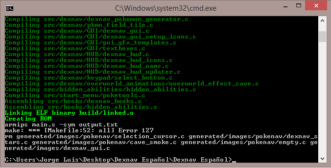 Finalmente ponemos make y comenzara a compilar, se creara una carpeta llamada build con la rom donde se instalo la dexnav.