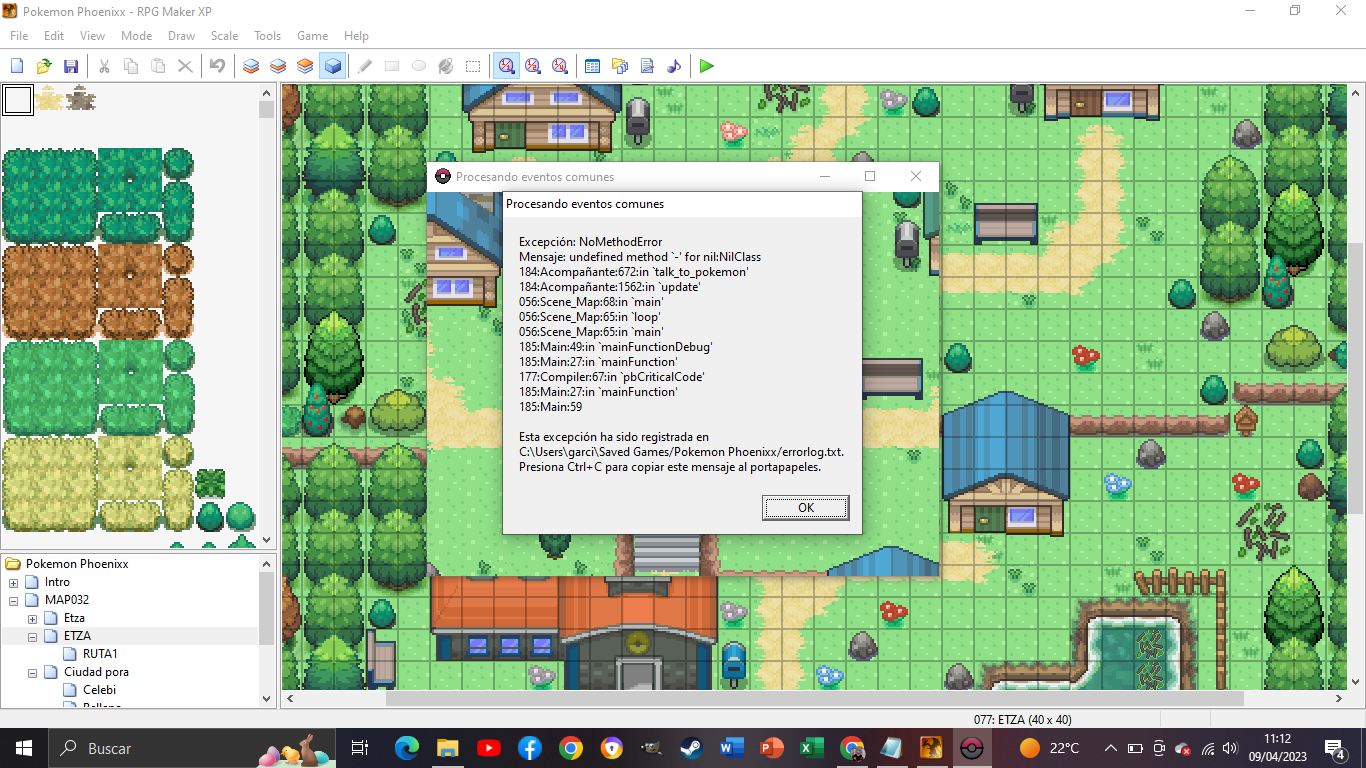 Para que podamos entender por qué te ocurre, necesitamos ver el script que tú has copiado como “Acompañante”, sobre las líneas 700-705 (la 704 exactamente pero, para ver el contexto mejor esa franja) y saber cuándo salta, es decir, en qué momento del juego. ¿Tienes Pokémon en tu equipo? ¿Es siempre que empiezas una nueva partida? ¿Es en pokémon específicos? El tutorial que has visto en Youtube da bastante igual sin saber lo que has cambiado xD