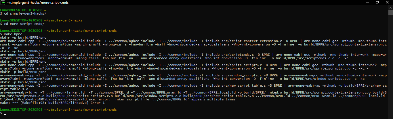 Y luego ejecutan "make bpee", si su base es emerald o "make bpre", si su base es fire red.