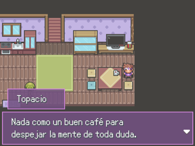 Al recoger objetos, el prota lo cogerá haciendo una animación y el objeto saldrá en la izquierda con el nombre, ahorrando la caja de texto que menciona lo obtenido.