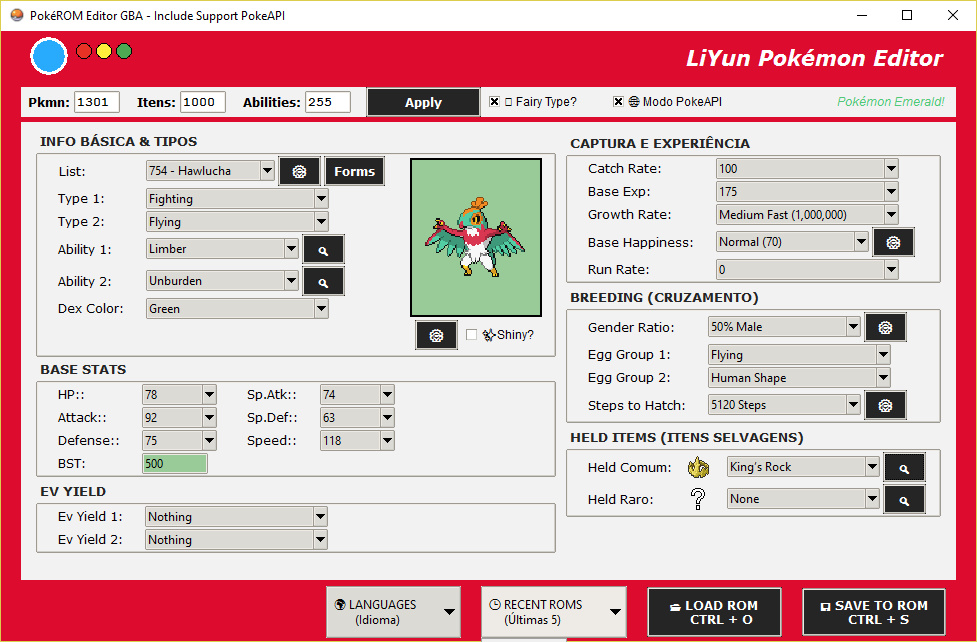 * Sprite Update via API: In addition to the stats, the program tries to download and display the Pokémon's image directly from the PokeAPI database while it is being edited. Note: This does not insert the PokeAPI sprite into the ROM; it only downloads the currently selected Pokémon's sprite as a reference.