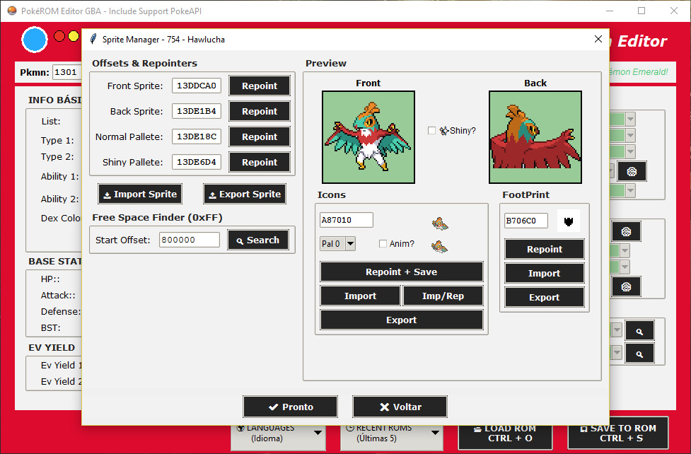 * Ctrl + S: Salva os dados do Pokémon atual na ROM.