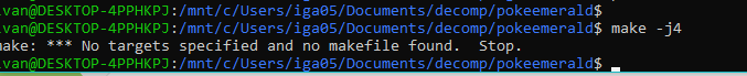 Tiene pinta que, en WSL, no estás posicionado en la carpeta de Pokeemerald.